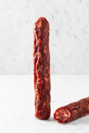 Quando il gusto del peperoncino è in perfetto equilibrio con il sapore del salame, senza coprirlo, il miracolo è riuscito! Questa è la versione piccante del nostro cacciatorino… Partendo dalla ricetta tradizionale del salame, abbiamo aggiunto semi di finocchio e peperoncino frantumato. Ai nostri clienti piace utilizzarlo per antipasti sfiziosi, oppure per guarnire una bella e focosa pizza!