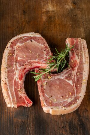 Il nostro bistecche di maiale non è altro che un’eccellente rivisitazione del taglio classico della braciola… Viene ottenuto lasciando attaccato alla stessa, la fetta di pancetta e la cotenna. Dopo averlo tagliato nella giusta misura, viene condito con sale ed aromi naturali. La presenza dell’osso, delle fasce muscolari e del grasso adiacente, mantengono la parte centrale morbida e gustosa, rendendo il bisteccone un prodotto gustoso… Facilissimo da preparare, pronto per essere messo a cuocere! I nostri clienti preferiscono cuocerlo sulla griglia.