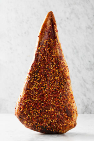 Le pancette Cironi vengono ottenute dall’accurata selezione delle pance fresche dei nostri maiali. La salagione a secco dura 8 giorni con massaggi periodici ogni 72 ore, tempo in cui forniamo al prodotto il sapore che lo contraddistingue, aggiungendo al sale stesso gli aromi. La stagionatura varia dai 40 agli 80 giorni. Ottima per antipasti gustosi!