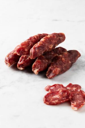 La nostra salsiccia solo sale viene ottenuta dal sezionamento di carni pregiate, quali: spalla, prosciutto e collo. Escludiamo totalmente fra tutti gli ingredienti basilari della ricetta tradizionale, la presenza di peperoncino, in modo da renderla dolce al gusto… Solo così la nostra salsiccia diventa una prelibatezza e, ad oggi, risulta una delle più richieste dell’intera produzione!